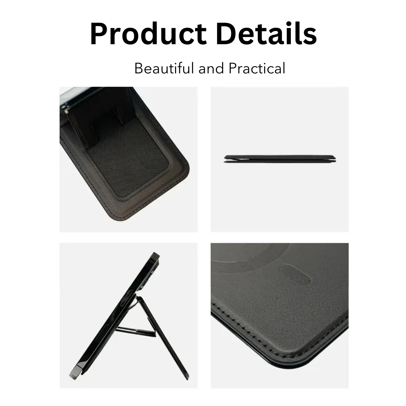 Functionality: Dual-purpose as a magnetic card holder and a sturdy phone stand for hands-free viewing